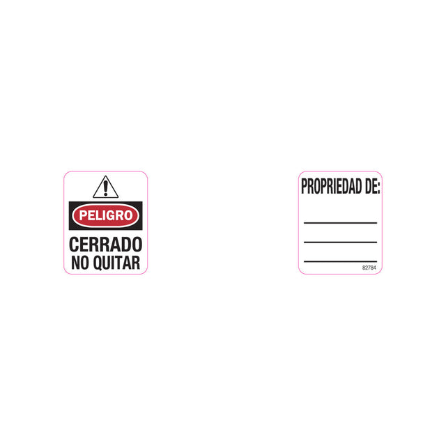 The Master Lock No. S140LES Padlock Labels feature 50 pack of European Spanish padlock labels. Labels are designed to fit on 410 and 406 Zenex™ Thermoplastic safety padlocks.