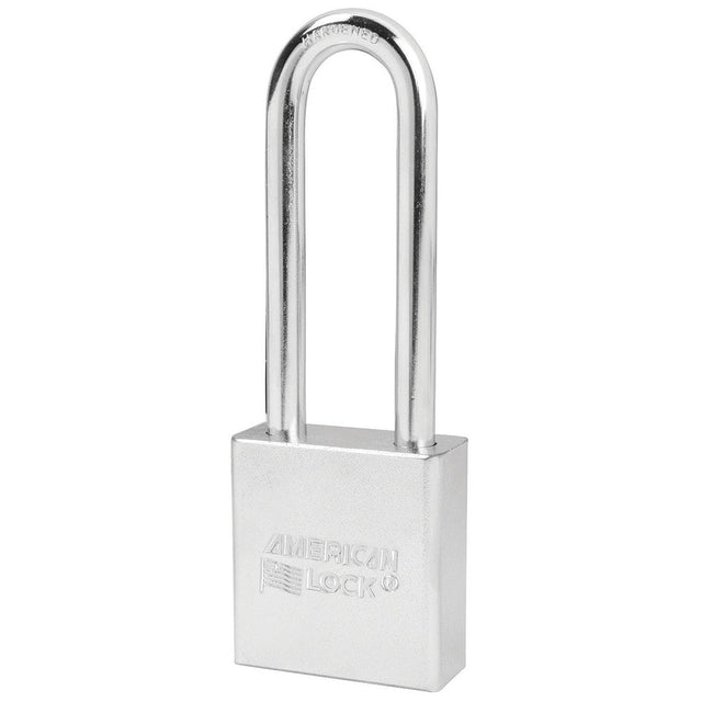 The American Lock No. A5202KA Solid Steel Padlock, Keyed Alike – multiple locks open with the same key – features a 1-3/4in (44mm) wide hardened, chrome plated solid steel body to resist cutting, sawing and corrosion and a 3in (75mm) tall, 5/16in (8mm) diameter hardened boron alloy shackle for superior cut resistance. Easy to service with a 5-pin APTC12 rekeyable cylinder, this padlock is ideal for securing gates, sheds, truck/van doors and industrial machinery.