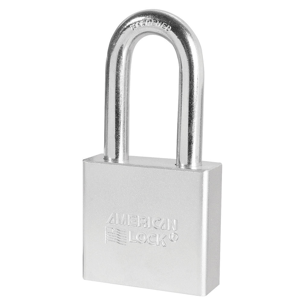 The American Lock No. A5261KA Solid Steel Padlock, Keyed Alike – multiple locks open with the same key – features a 2in (51mm) wide hardened, chrome plated solid steel body to resist cutting, sawing and corrosion and a 2in (51mm) tall, 3/8in (10mm) diameter hardened boron alloy shackle for superior cut resistance. Easy to service with a 5-pin APTC12 rekeyable cylinder, this padlock is ideal for securing gates, sheds, truck/van doors and industrial machinery.
