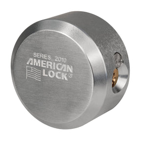 The American Lock No. A2010KA Hidden Shackle Padlock, Keyed Alike – multiple locks open with the same key – features a 2-7/8in (73mm) wide case hardened solid steel lockbody to withstand forcible attacks. The 6-pin tumbler, rekeyable cylinder provides superior pick resistance and tens of thousands of key changes. Flat back design is tapped and threaded to allow for attachment to either high security has A801 or A802.