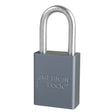 The American Lock No. A31KA Solid Body Padlock, Keyed Alike – multiple locks open with the same key – features a 1-1/2in (38mm) wide solid aluminum body and a 1-1/2in (38mm) tall, 1/4in (6mm) diameter chrome shackle for extra corrosion resistance. Ideal for corrosive environments, the non-rekeyable 5-pin APTC12 cylinder can be factory keyed to your requirements.