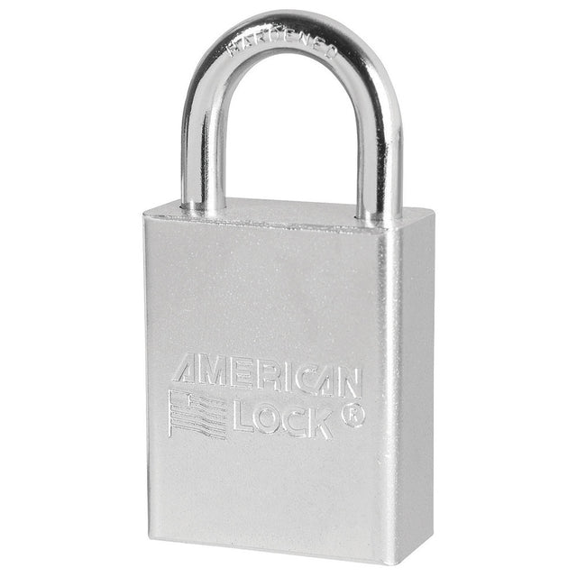 The American Lock No. A5100KA Solid Steel Padlock, Keyed Alike – multiple locks open with the same key – features a 1-1/2in (38mm) wide hardened, chrome plated solid steel body to resist cutting, sawing and corrosion and a 1in (25mm) tall, 1/4in (6mm) diameter hardened boron alloy shackle for superior cut resistance. Easy to service with a 5-pin APTC12 rekeyable cylinder, this padlock is ideal for securing gates, sheds, truck/van doors and industrial machinery.