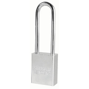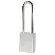 The American Lock No. A5102KA Solid Steel Padlock, Keyed Alike – multiple locks open with the same key – features a 1-1/2in (38mm) wide hardened, chrome plated solid steel body to resist cutting, sawing and corrosion and a 1-1/2in (38mm) tall, 1/4in (6mm) diameter hardened boron alloy shackle for superior cut resistance. Easy to service with a 5-pin APTC12 rekeyable cylinder, this padlock is ideal for securing gates, sheds, truck/van doors and industrial machinery.